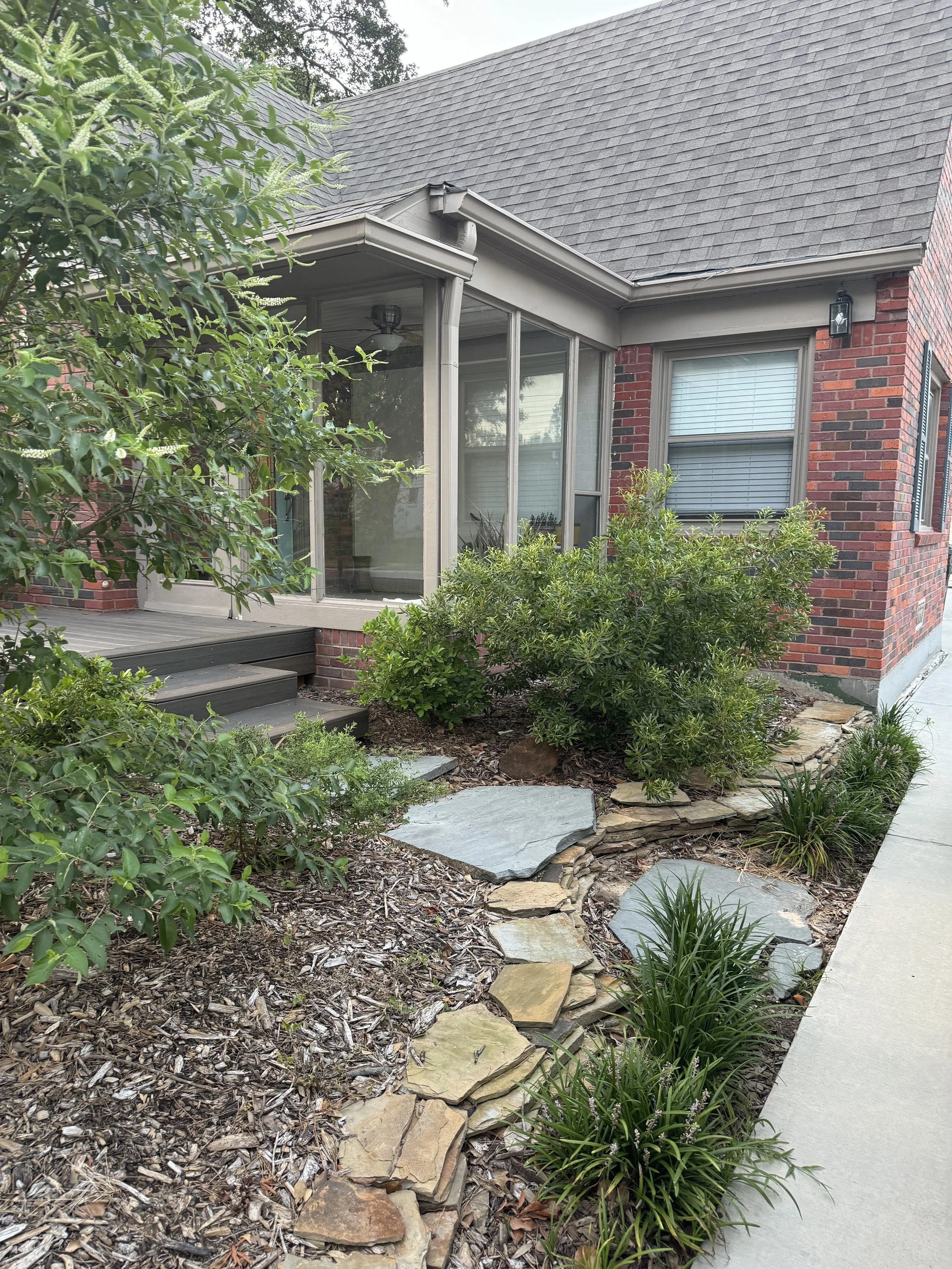 I’ve loved all of my projects for their own reasons and I hate to play favorites, but this one is hard to beat. It’s also my most recent completion, so maybe my work is aging like a good wine and each project is more lovable than the last. If only I could enjoy the wine - this type of work is fraught with all kinds of interesting emotions that I may need years of therapy to process. Large flagstone walkways, many baby native trees planted, short retention walls, frog fruit ground cover, tons of native bad hair day plants - mist flower, prairie aster, muhly, turk’s cap, the usual.